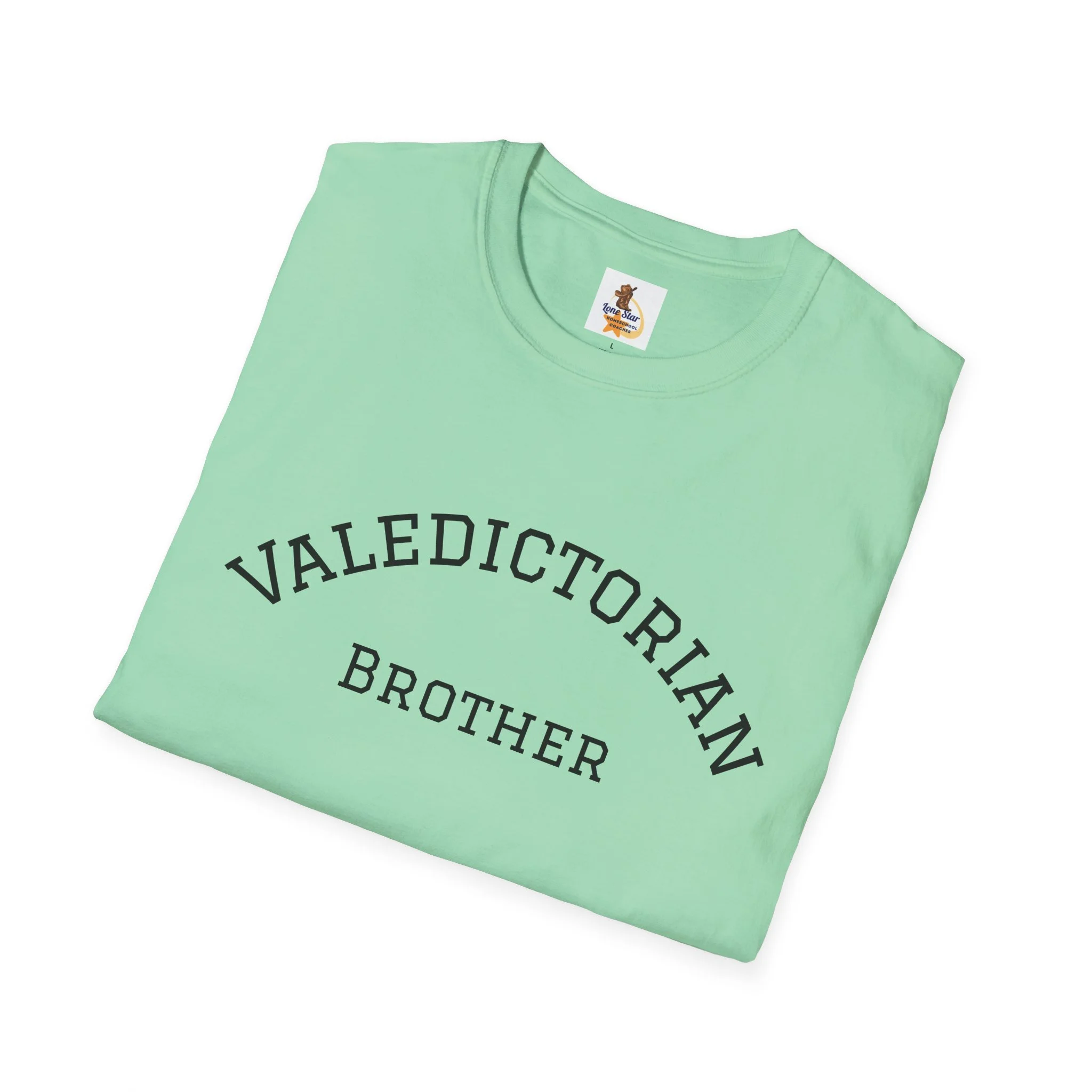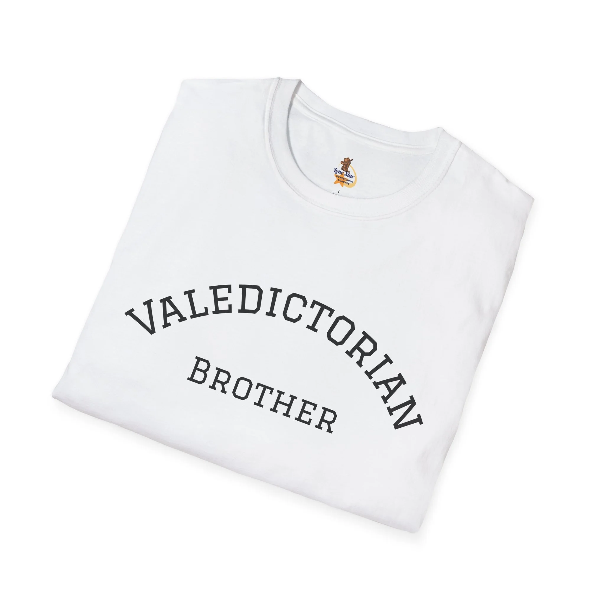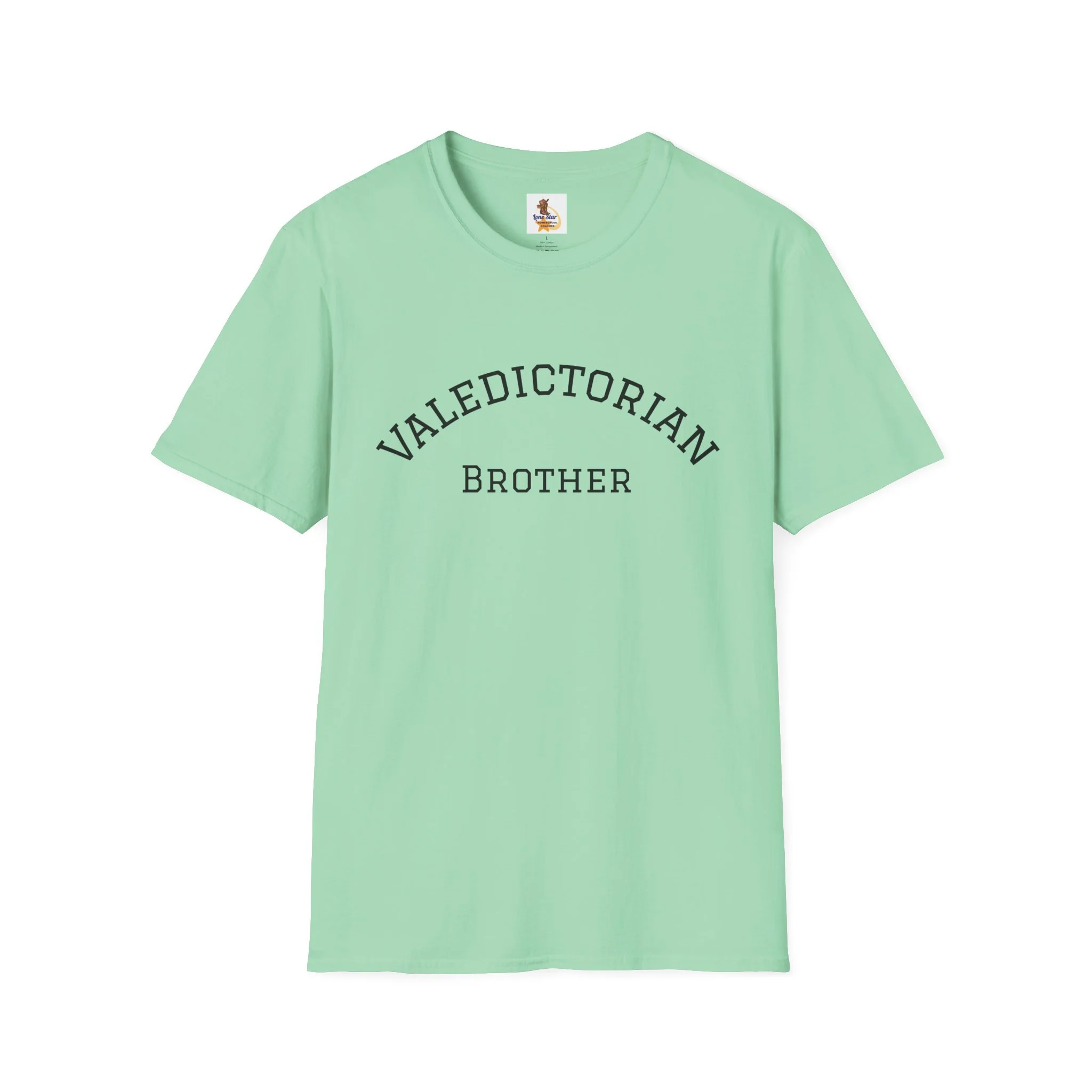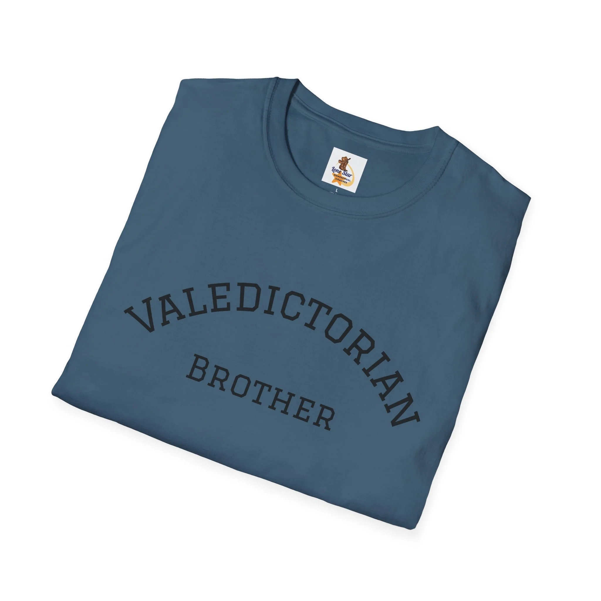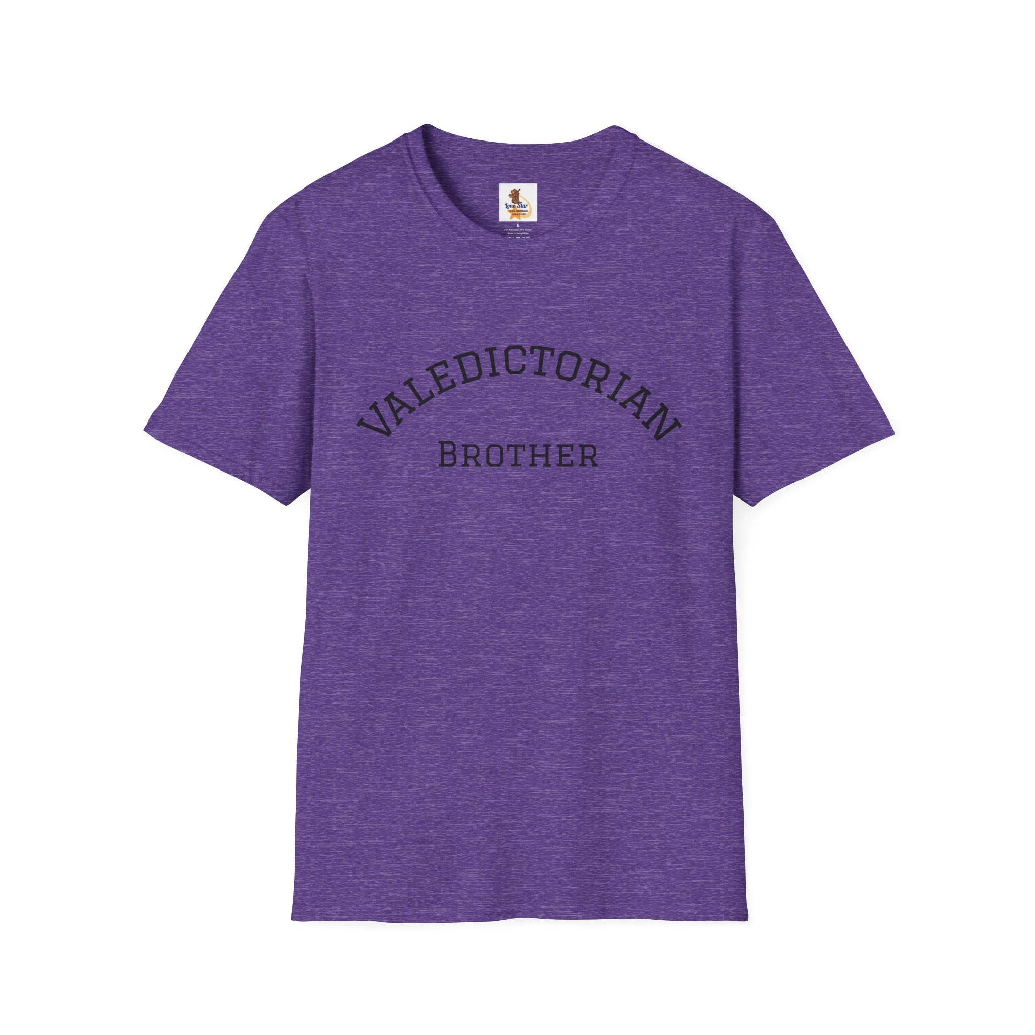 A clean, vintage-inspired tee that quietly celebrates a big moment. The soft, slightly worn lettering reads “VALEDICTORIAN / Brother,” like a varsity arch pulled from an old yearbook. Lightweight ring-spun cotton drapes easily over the shoulders. It feels lived-in from the first wear — calm, confident, and a little nostalgic. Wear it to low-key graduation gatherings, photos with family, or on the drive home after the ceremony. Layer it under a jacket for cooler weather or pair with jeans and sneakers for an easy, respectful look that puts the achievement front and center without shouting. This shirt suits siblings who want to honor a graduate with warmth and subtlety, keeping the focus on the shared moment rather than flashy branding.