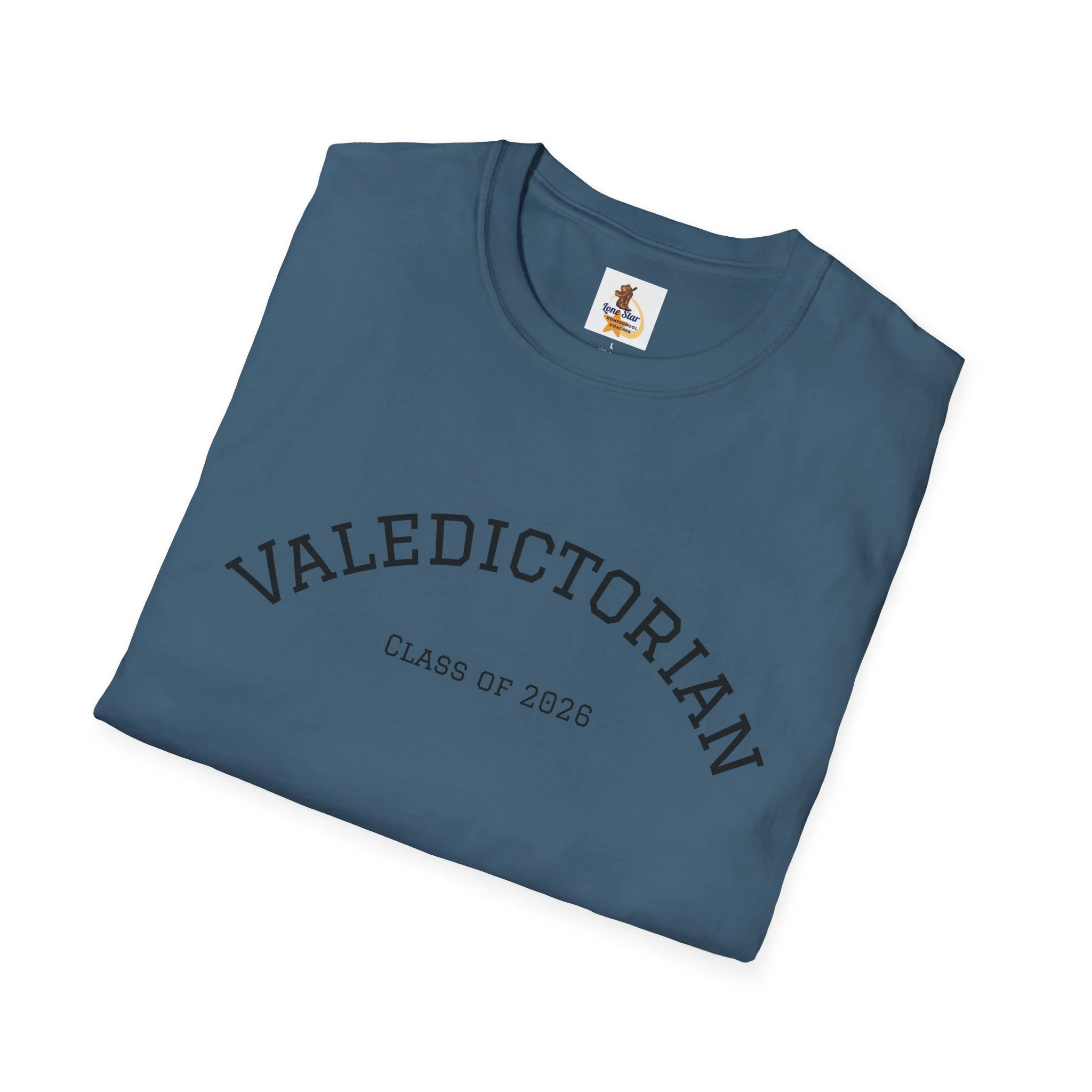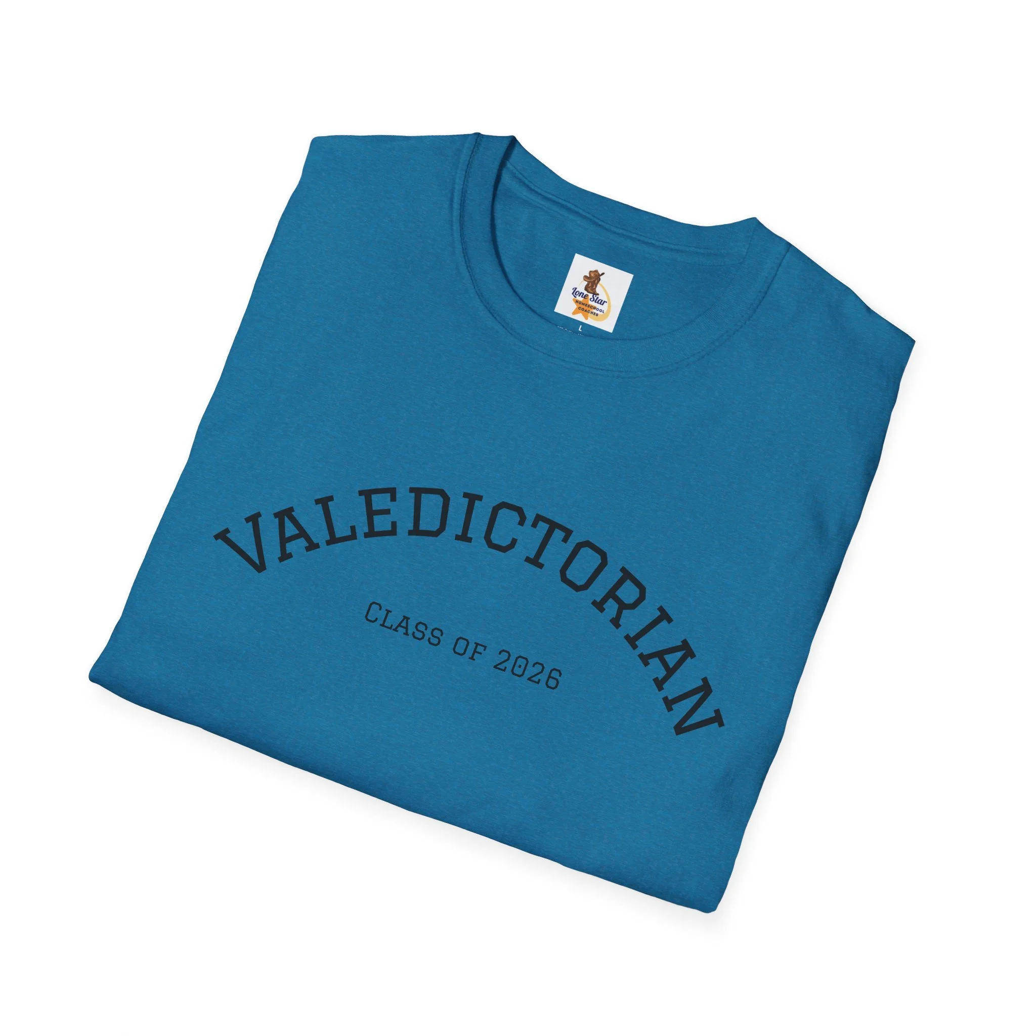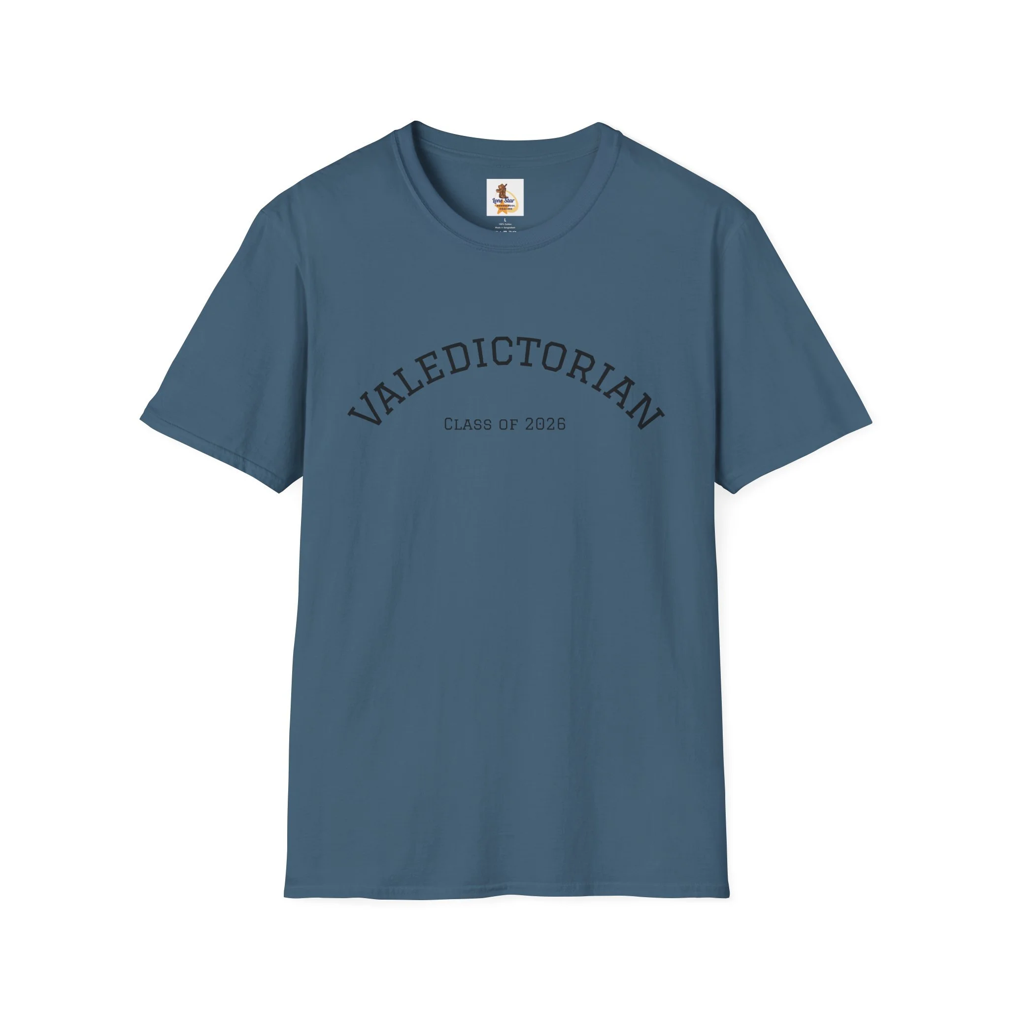 A clean, understated tee bearing a vintage collegiate arc that reads “VALEDICTORIAN” with a subtle “Class of 2026” line beneath. The shirt feels light and airy against the skin — like the quiet confidence of walking across a graduation stage and then stepping into the day after. Wear it with faded jeans and a cardigan for a low-key celebration, or layer under a blazer when you want to nod to achievement without shouting about it. The minimalist print gives space for conversation: classmates recognize the reference, family members smile, and the wearer carries a private pride that’s both calm and unmistakable.