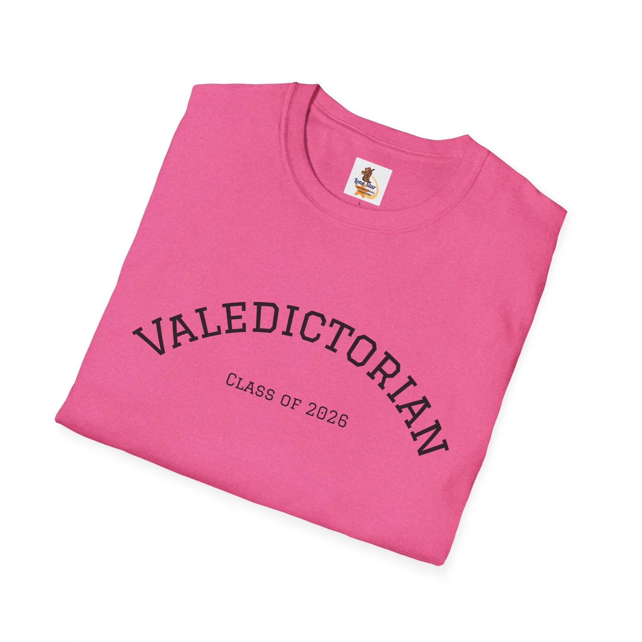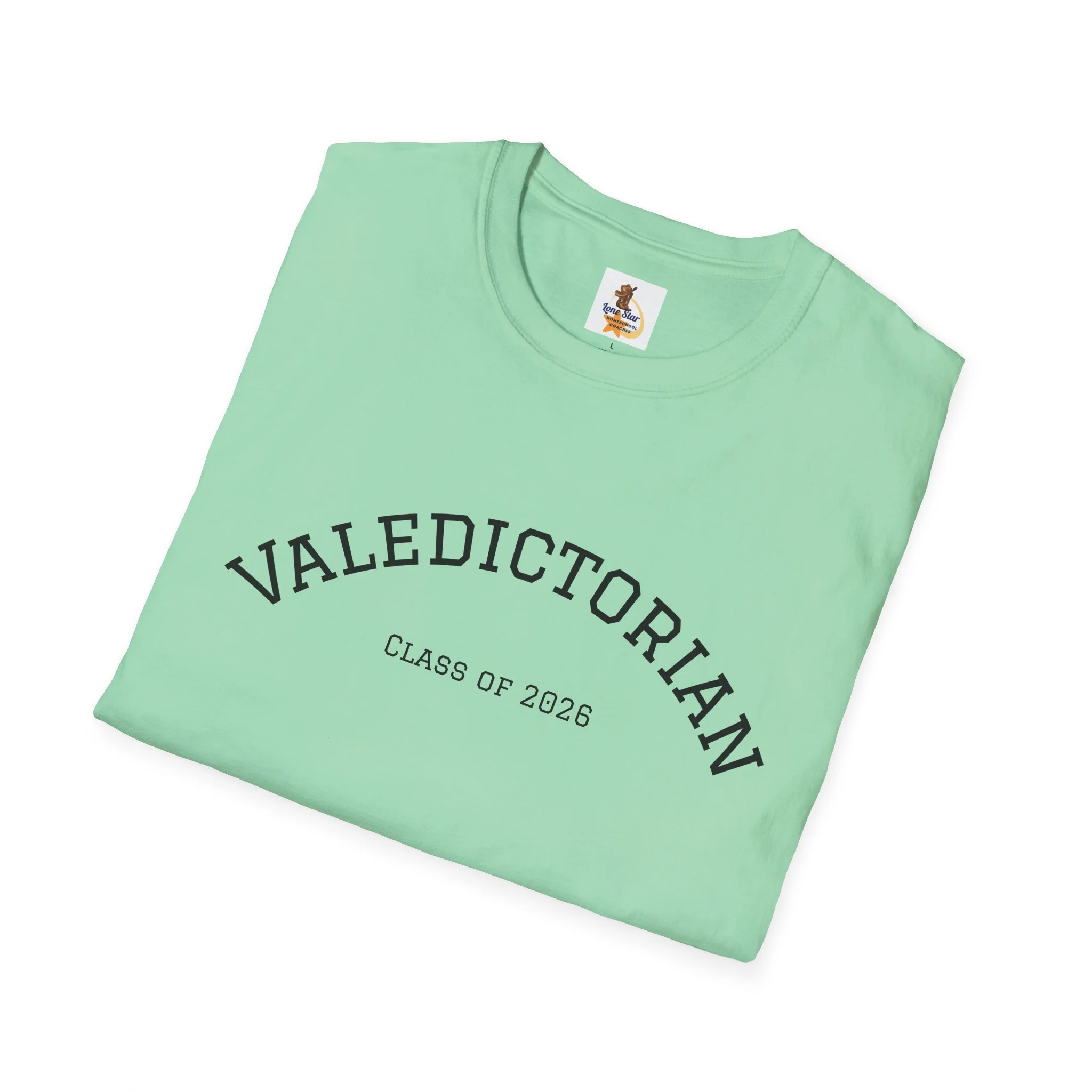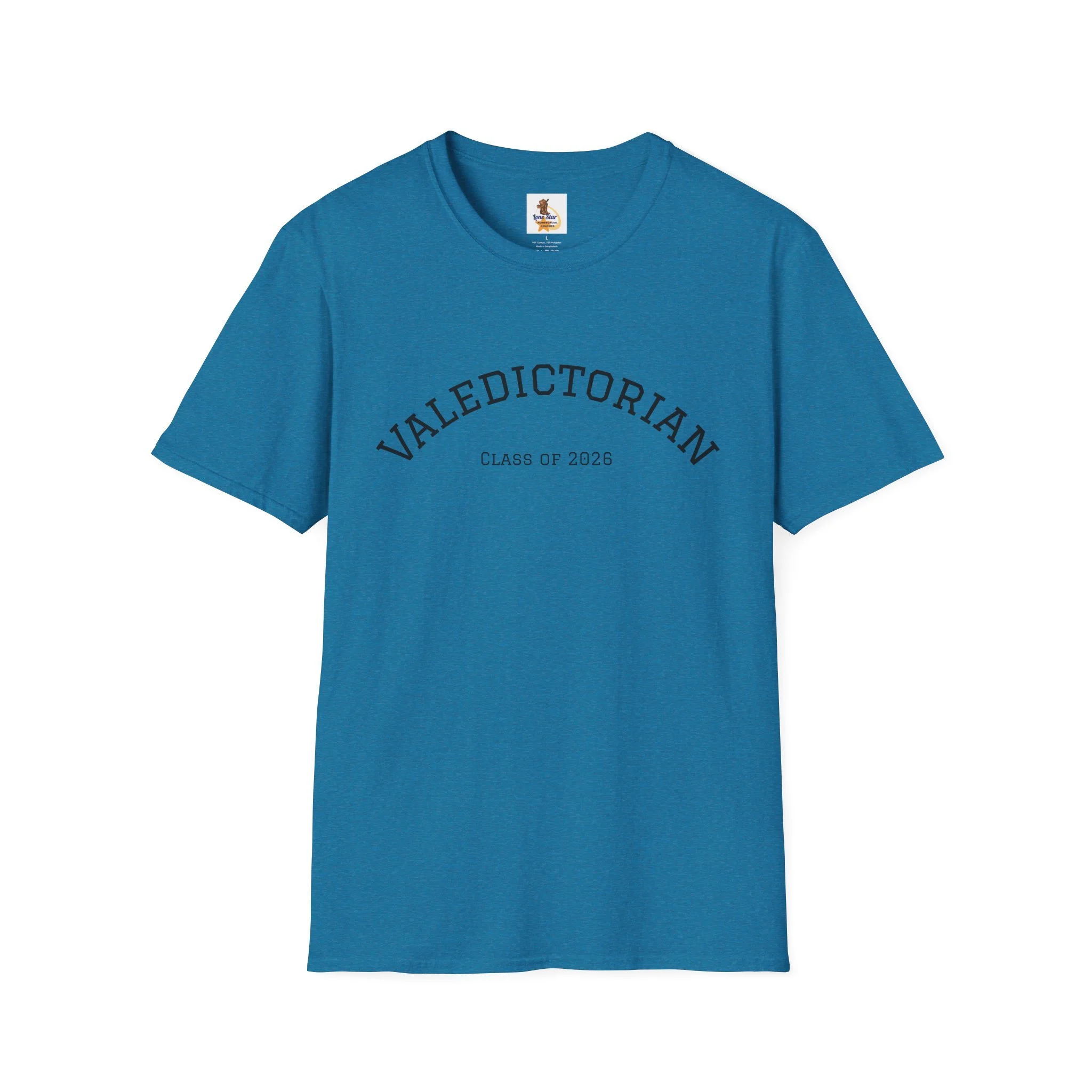 A clean, understated tee bearing a vintage collegiate arc that reads “VALEDICTORIAN” with a subtle “Class of 2026” line beneath. The shirt feels light and airy against the skin — like the quiet confidence of walking across a graduation stage and then stepping into the day after. Wear it with faded jeans and a cardigan for a low-key celebration, or layer under a blazer when you want to nod to achievement without shouting about it. The minimalist print gives space for conversation: classmates recognize the reference, family members smile, and the wearer carries a private pride that’s both calm and unmistakable.