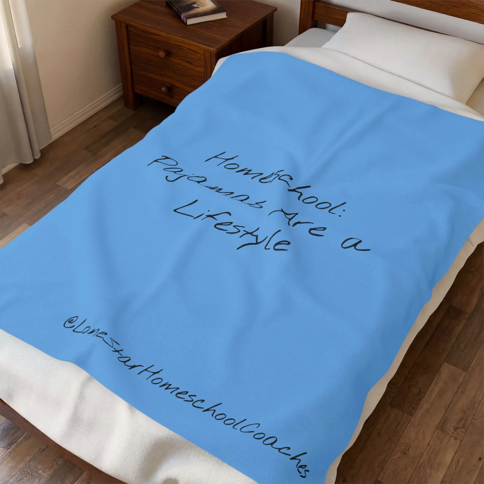 Velveteen Plush Blanket — "Homeschool: Pajamas Are a Lifestyle" Cozy Throw for Homeschool Parents & Kids